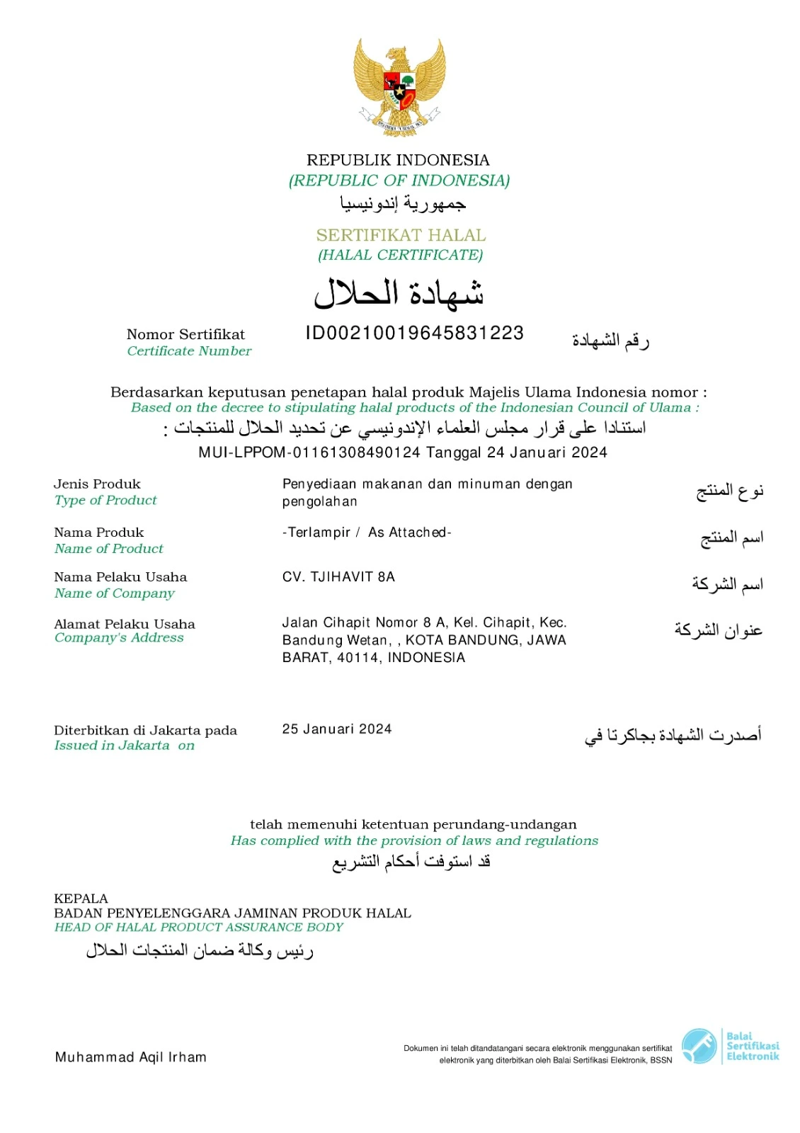 Sajian yang kami hadirkan tidak hanya lezat dan berkualitas, tetapi juga terjamin kehalalannya.